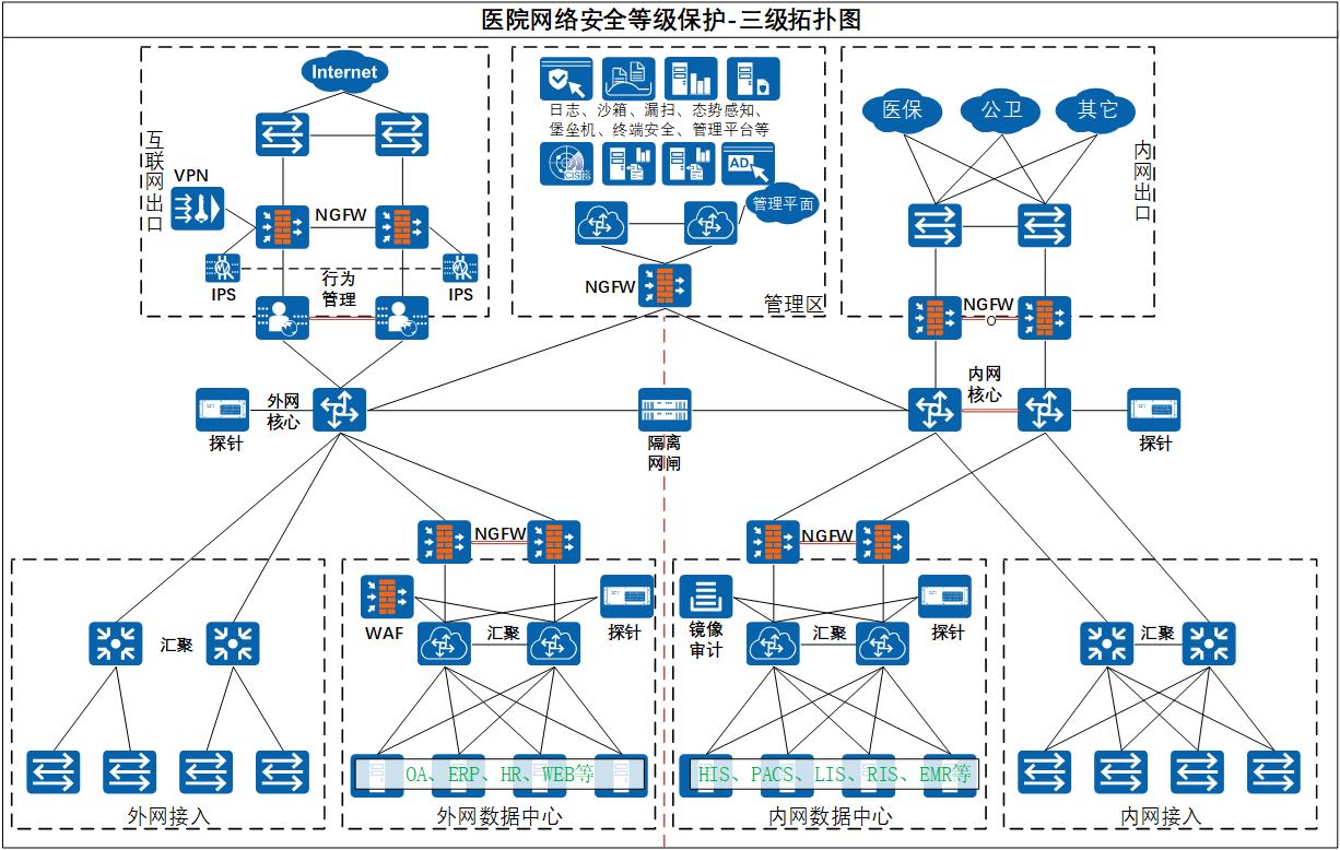 - 等級測評:在測評階段會指導醫院配合測評中心開展等級測評工作,并保障順利通過等保測評獲得測評報告。